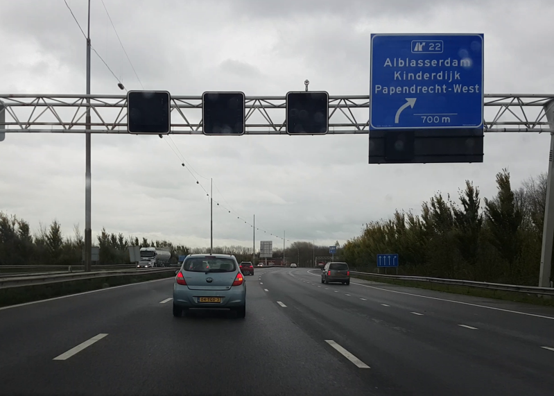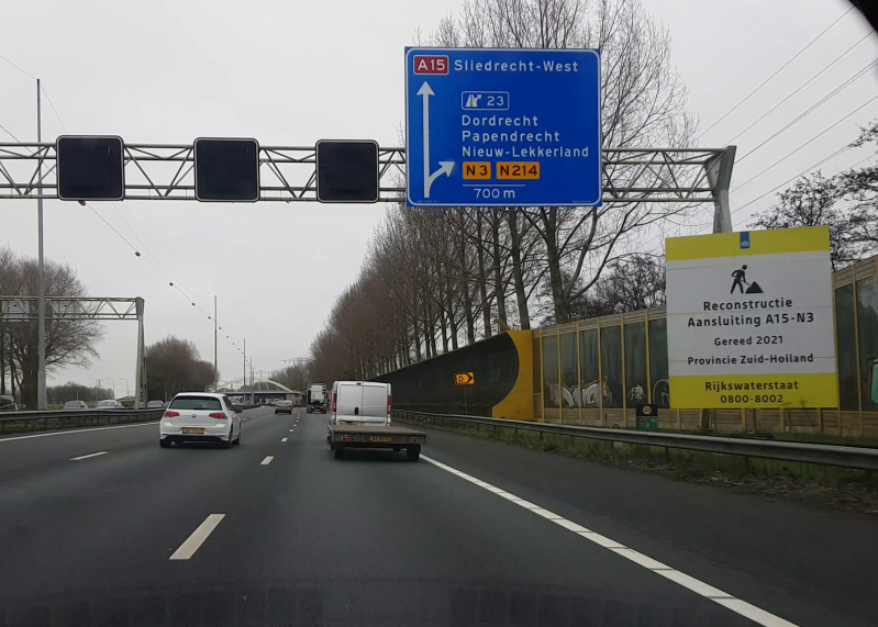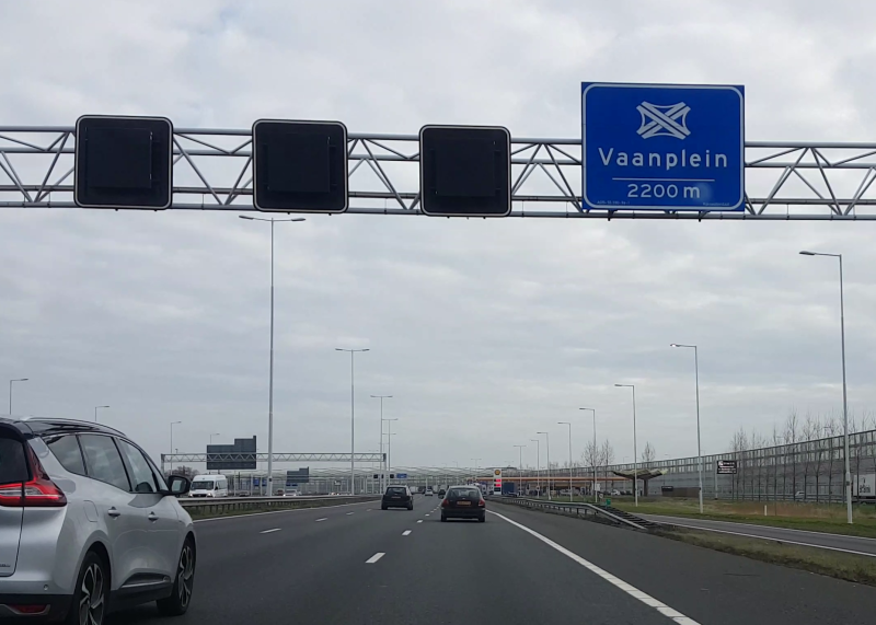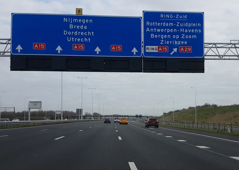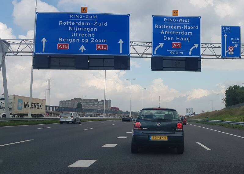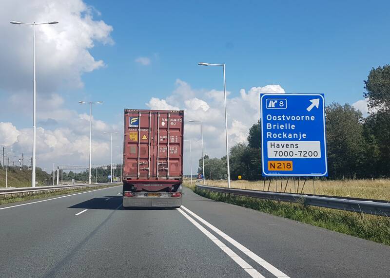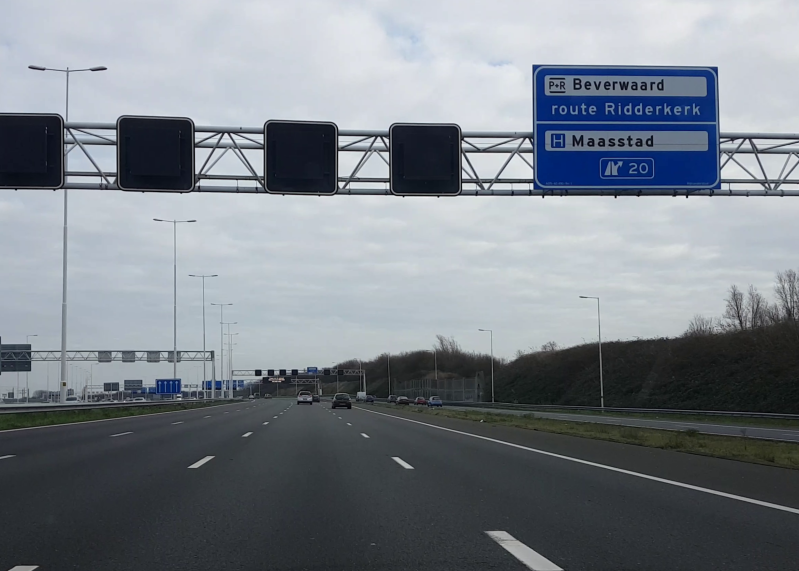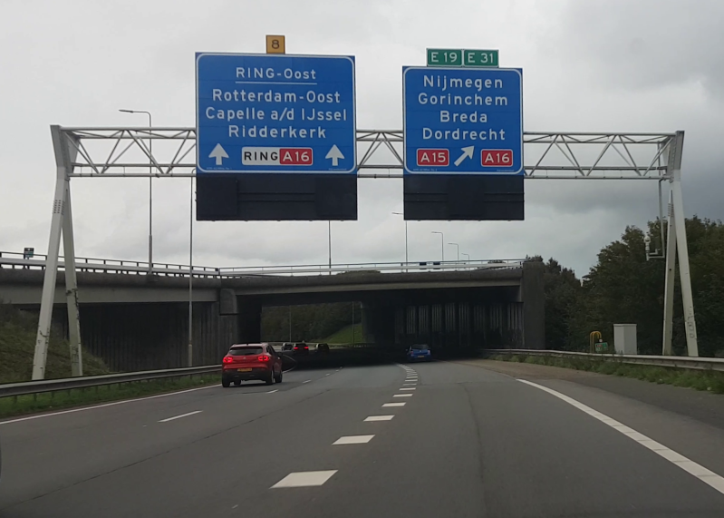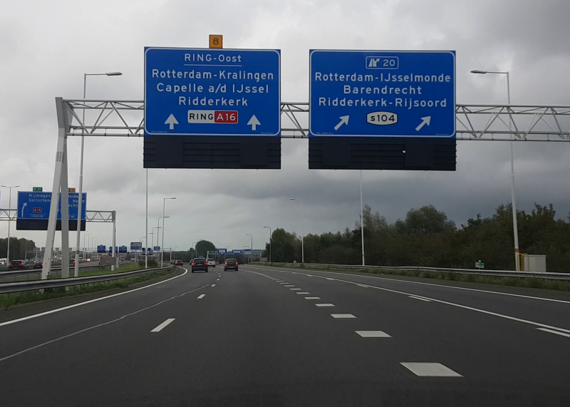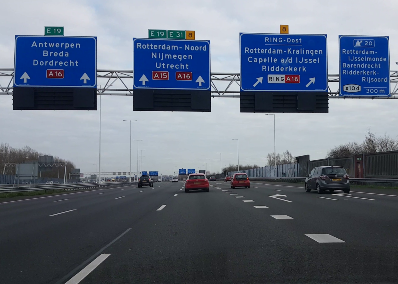 Een gecombineerde afrit die zo voor aangekondigd wordt komt niet vaak voor. Spijkenisse is afrit 16, Hoogvliet afrit 17.