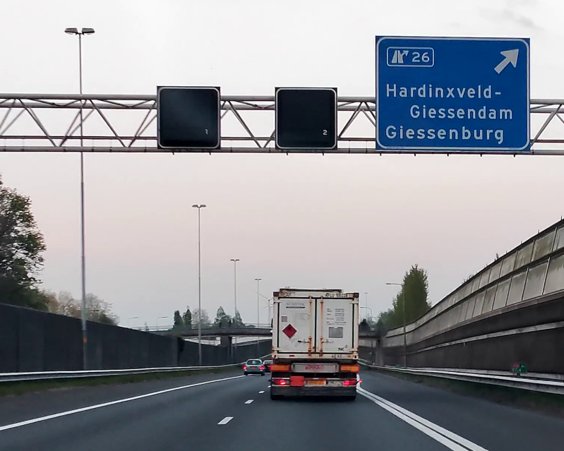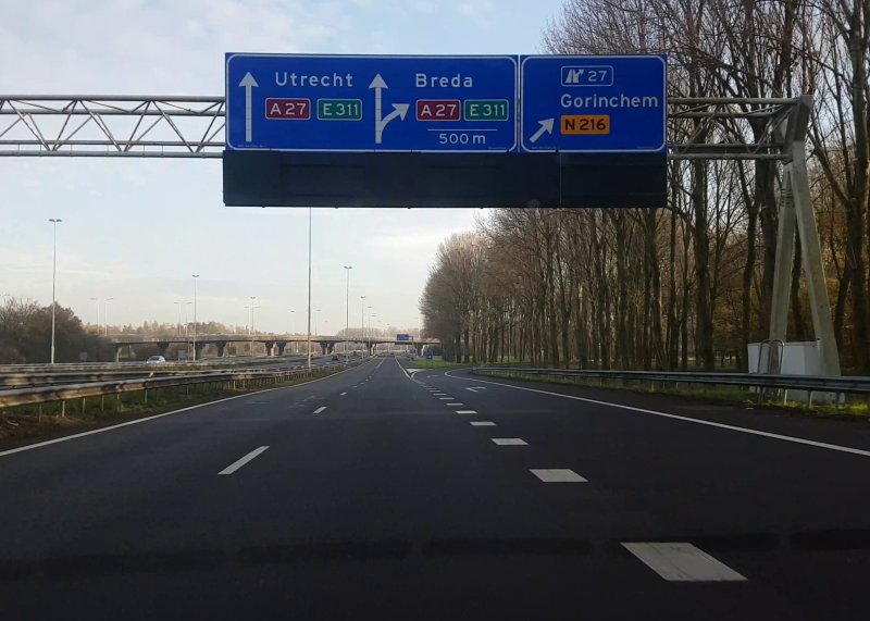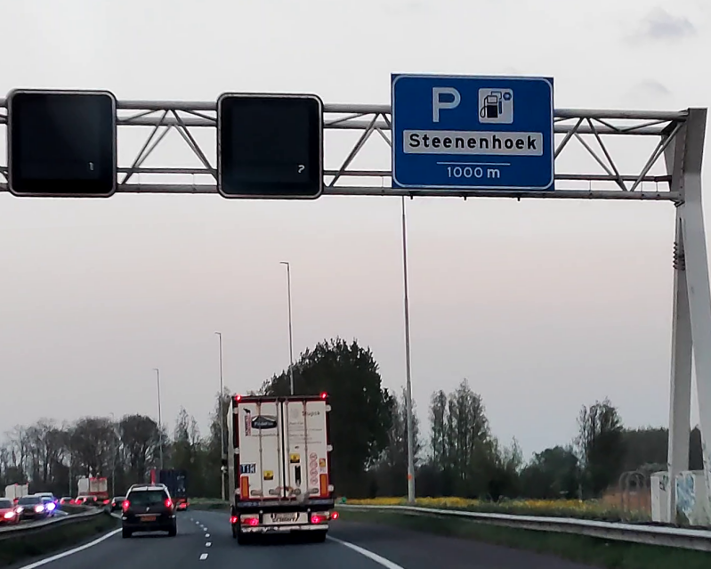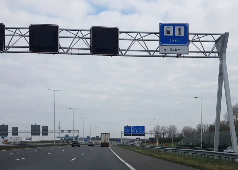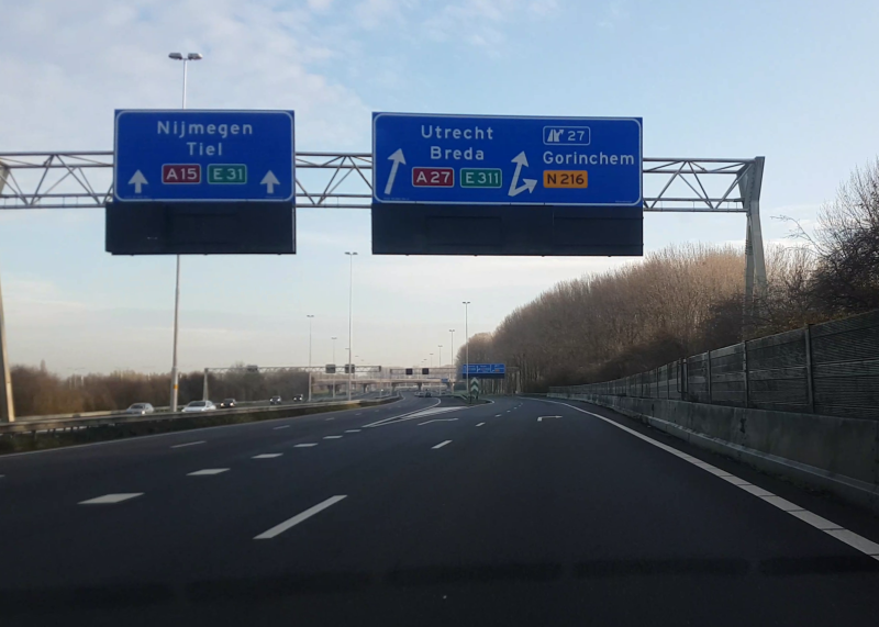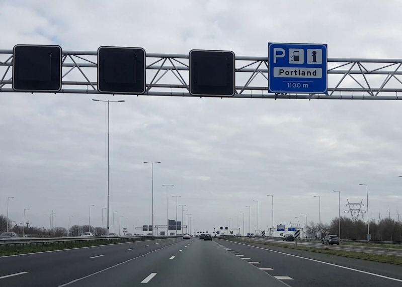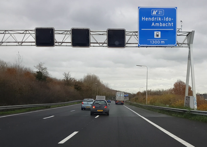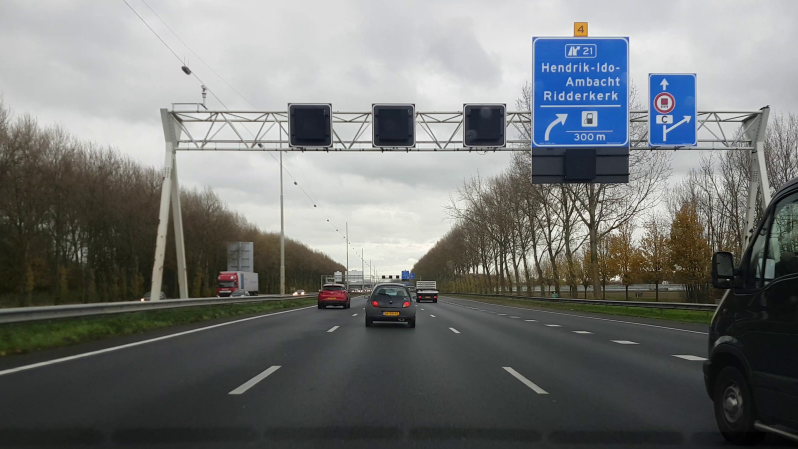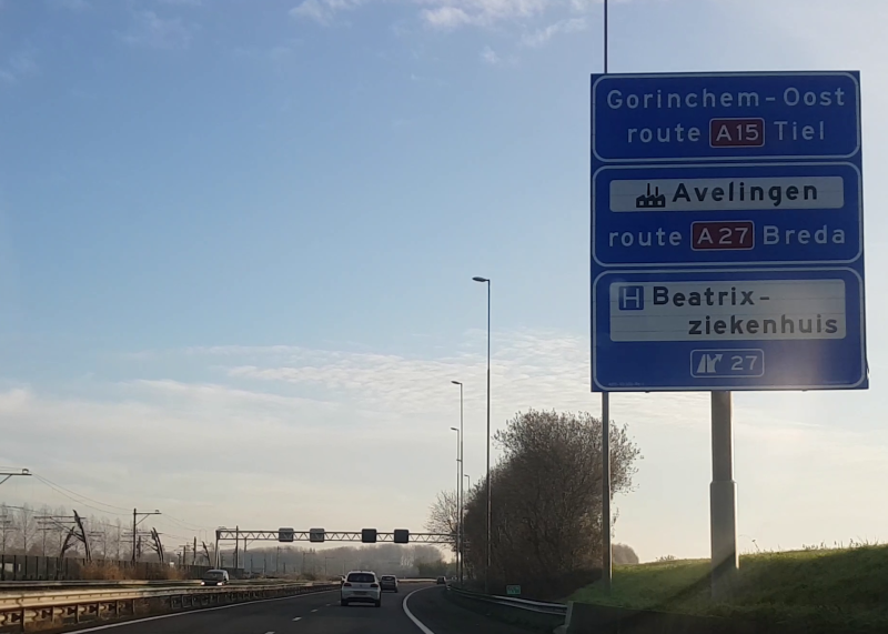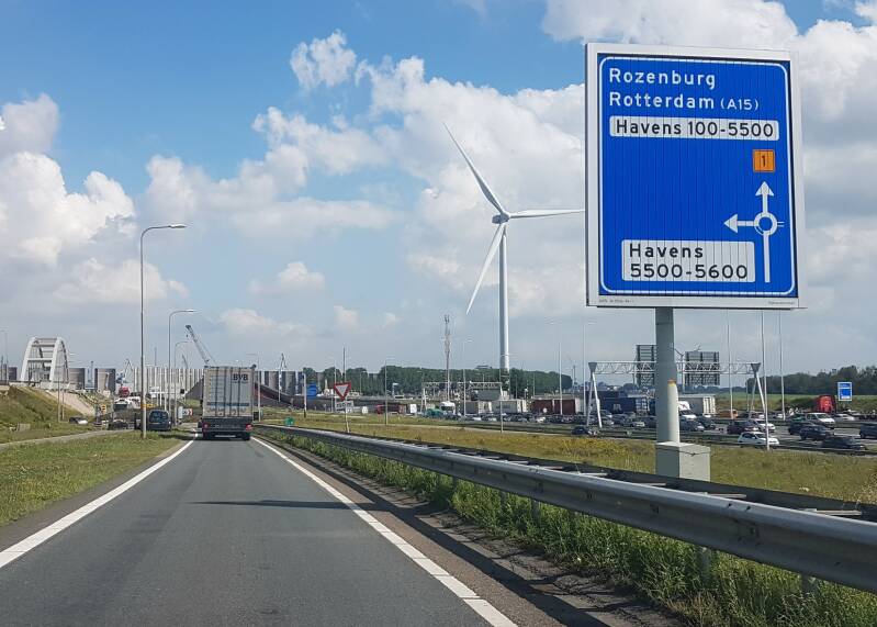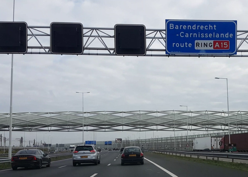 Een gecombineerde afrit die zo voor aangekondigd wordt komt niet vaak voor. Spijkenisse is afrit 16, Hoogvliet afrit 17.