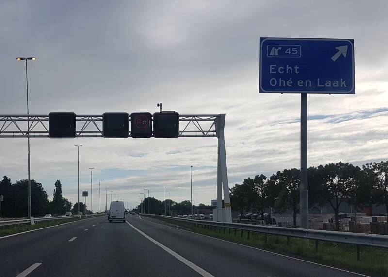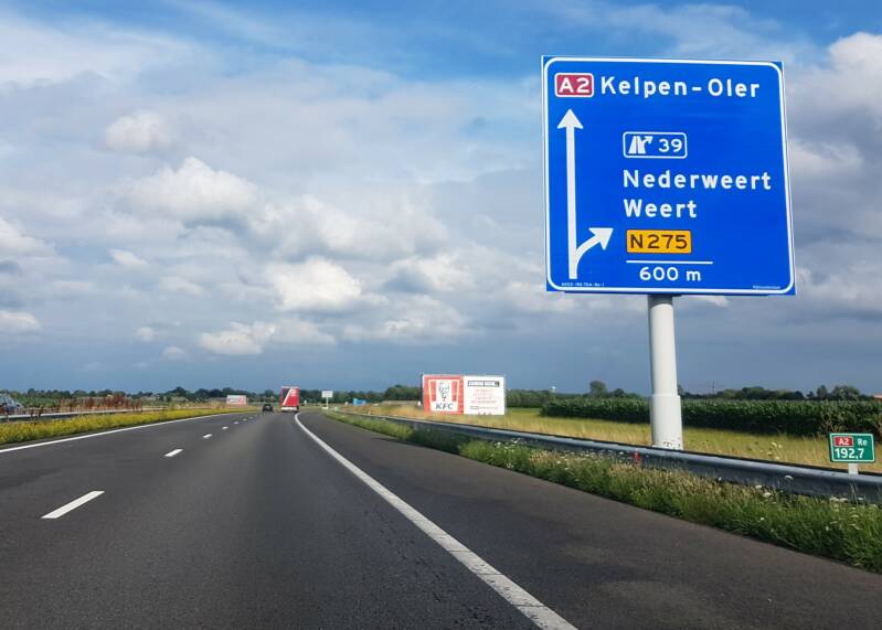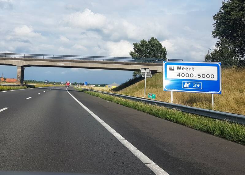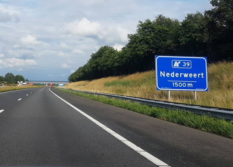 Na dit bordje sprigt de kilometrering naar 200 rond. Dit vanwege het ex-A2 tracé wat vroeger door Weert liep.