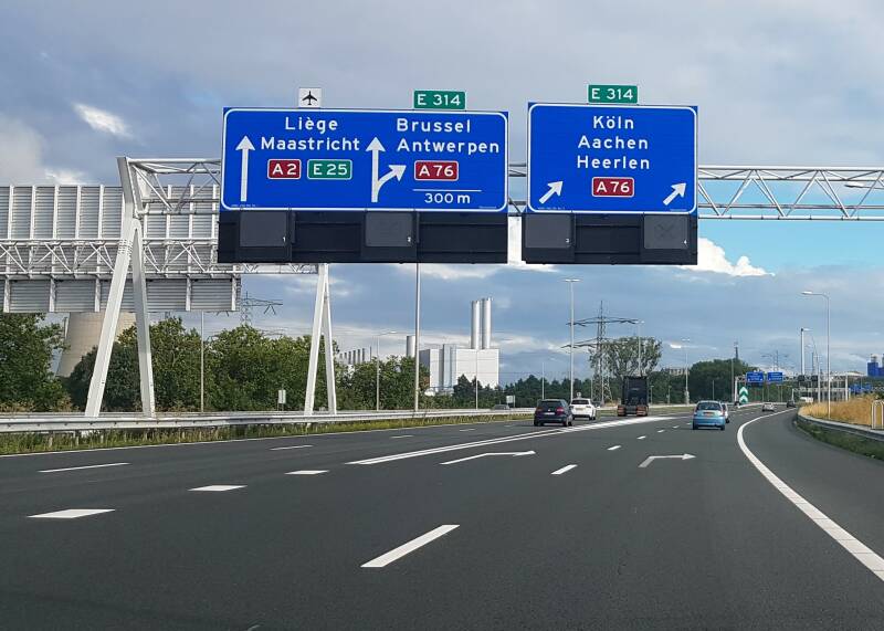 Onder de streep staat vermoedelijk Heerlen. Het A76-schildje zou overigens niet passen, tenzij er Köln staat.