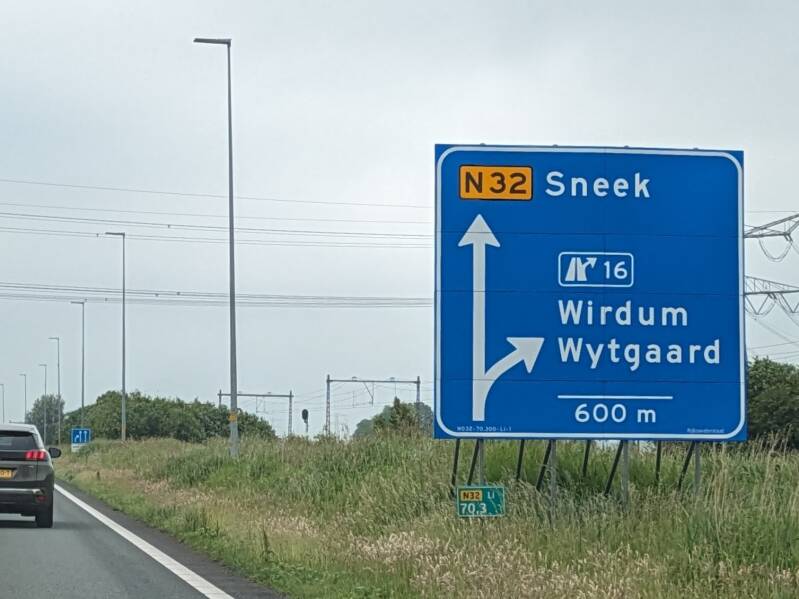 Eigenlijk is het wegnummer N32 voor rechtdoor hier foutief. Je komt onherroepelijk uit op de A32 als je hier rechtdoor gaat.