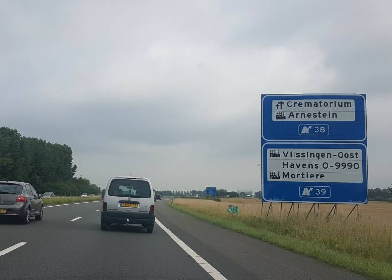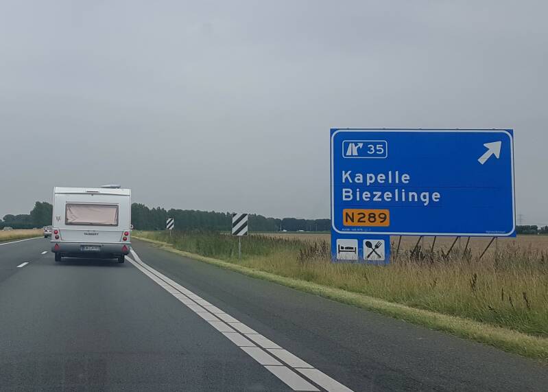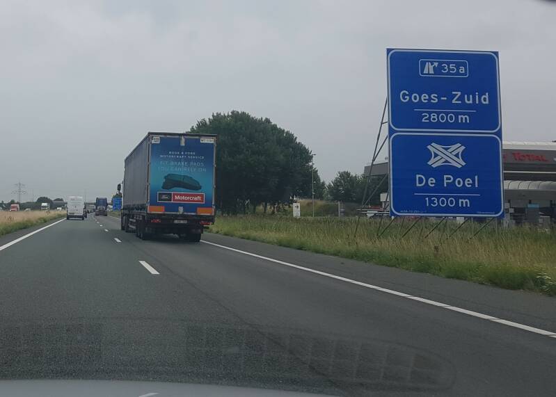 Vroeger heette deze aansluting 's-Gravenpolder, wat de breedte van dit bord verklaart.