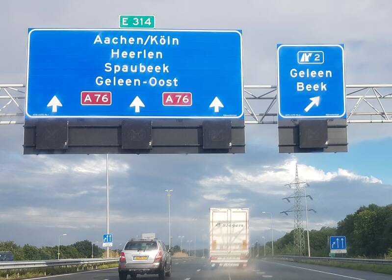 Dit is de laatste afrit voor de grens. De Duitse A4 wordt al aangekondigd.